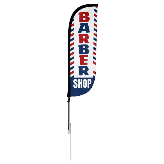 Give your barbershop the spotlight it deserves with this bold red, white, and blue feather flag, inspired by the timeless look of the spinning pole—reimagined for today’s street-level marketing. Whether you run a traditional barbershop or a modern grooming lounge, this flag instantly boosts your curb appeal and draws in fresh faces.