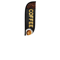 Wake up your storefront with this rich and inviting golden brown Coffee feather flag, designed to turn heads and draw in caffeine lovers from all directions. Featuring bold white “COFFEE” lettering, a splash of fresh brew, and a background of realistic roasted coffee beans, this flag practically smells like a fresh cup!