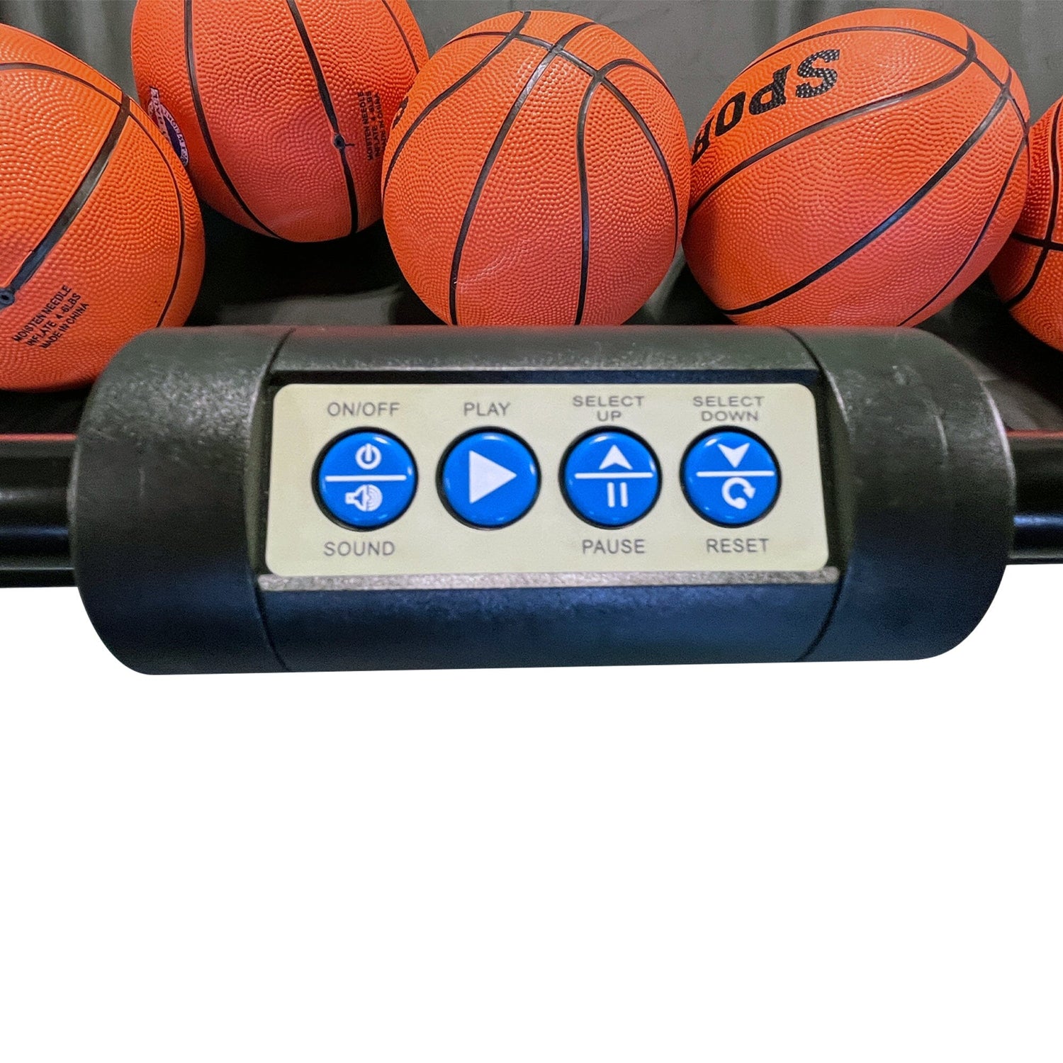 Includes 5 basketballs, pump, and needle — just add three AA batteries and get ready to shoot, score, and showcase your brand! Please note: Basketballs are NOT customizable.