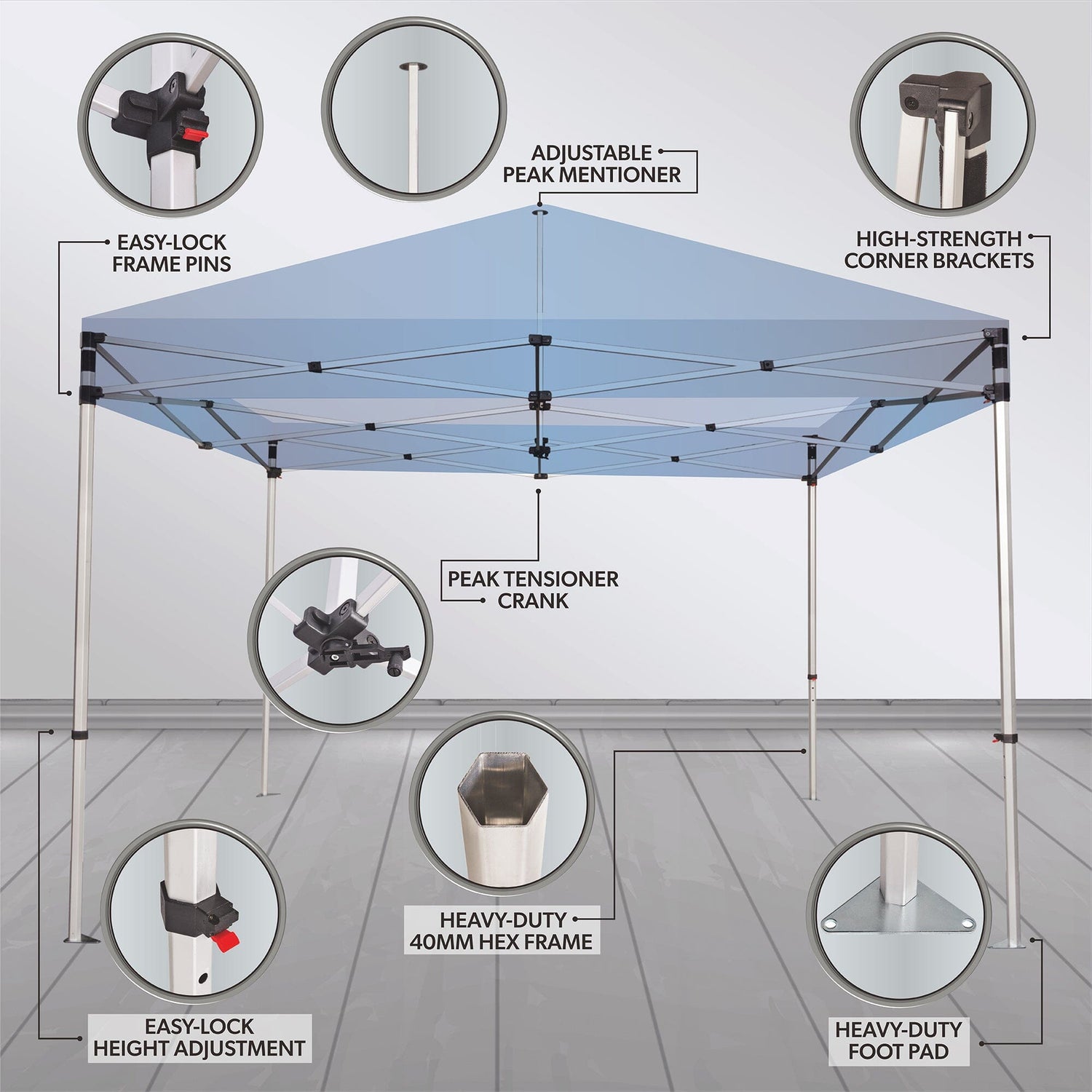 - 40mm Hex Tent Frame: Heavy-duty steel frame for maximum durability