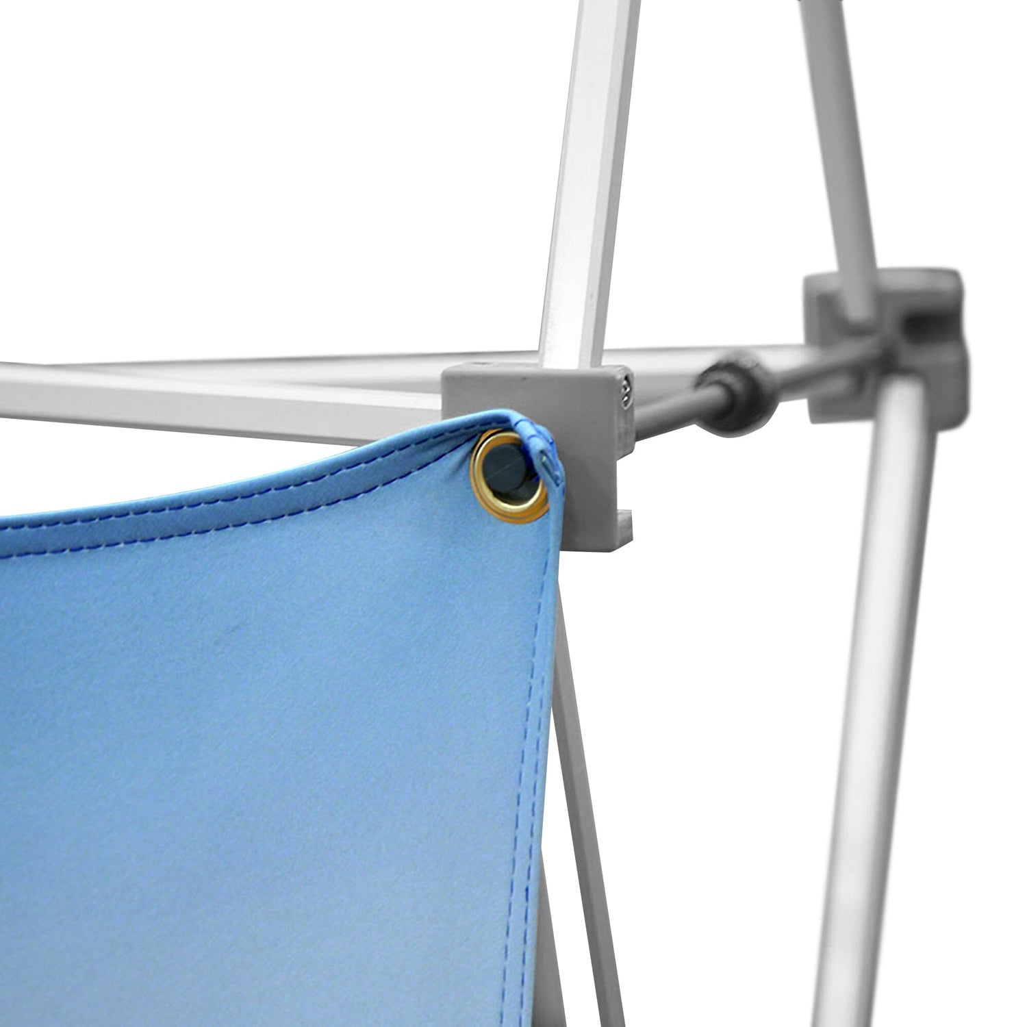 The lightweight pop-up aluminum frame and vibrant dye-sublimated elastic polyester panels make setup simple and stress-free—no tools required. Each panel attaches securely with corner grommets, creating a smooth, taut surface that highlights your graphics, logos, or messaging. When your event ends, pack it all into the included carrying bag for easy transport and storage.
