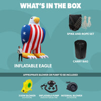 20ft Tall Patriotic Inflatable Eagle – Giant American Eagle for Events & Promotions. Show your patriotic pride and command attention with the 20ft Tall Giant Inflatable Eagle from LookOurWay. Featuring a bold red, white, and blue American flag design, this towering inflatable eagle is the perfect centerpiece for Fourth of July events, military celebrations, veterans' fundraisers, or any patriotic-themed promotion.