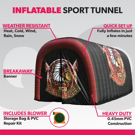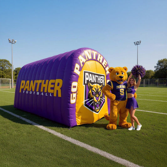 Create unforgettable entrances and fire up your fans with Custom Inflatable Sports Tunnels by LookOurWay—complete with a breakaway banner for that epic, run-through moment every team loves. Perfect for schools, football teams, soccer programs, and any organized sport, these eye-catching inflatables are fully customizable with your team’s logo, colors, and mascot using our premium dye-sublimation printing process. Built from durable, weather-resistant materials and hand-finished for top-notch quality, they’re designed to make a bold statement at games, pep rallies, homecoming events, and beyond. Whether you’re rallying the crowd or giving your athletes the spotlight they deserve, these tunnels deliver serious game-day energy. Plus, we offer a full lineup of custom sports inflatables—including arches, mascots, and more—so you can create a fully branded fan experience that’s impossible to ignore.