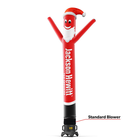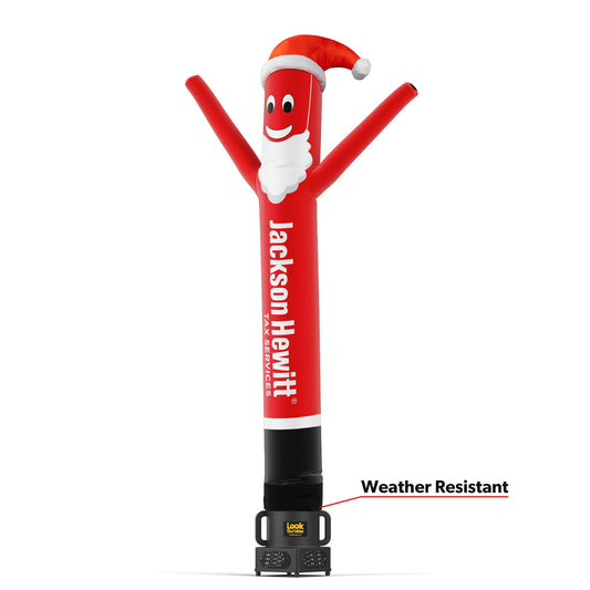 LookOurWay is proud to offer a festive twist on our classic red Air Dancer®—now decked out for the holidays! The Jackson Hewitt Santa Air Dancer® is our signature red design cleverly disguised with a jolly Santa beard and topped off with a bold white Jackson Hewitt logo printed on the body. Designed and approved for use at all Jackson Hewitt Tax Service locations, this holiday-ready inflatable is printed using our industry-leading dye sublimation process to ensure vibrant, long-lasting color. Turn heads and drive traffic this season with a touch of inflatable holiday magic from LookOurWay®.