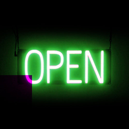 Make your storefront pop with the ultra-bright “OPEN” LED sign from SpellBrite. With its crisp, neon-like glow and attention-grabbing design, this sign makes it crystal clear that you're open for business. It’s powerful enough to cut through window tint and daylight glare, so customers can spot you from the street—day or night.