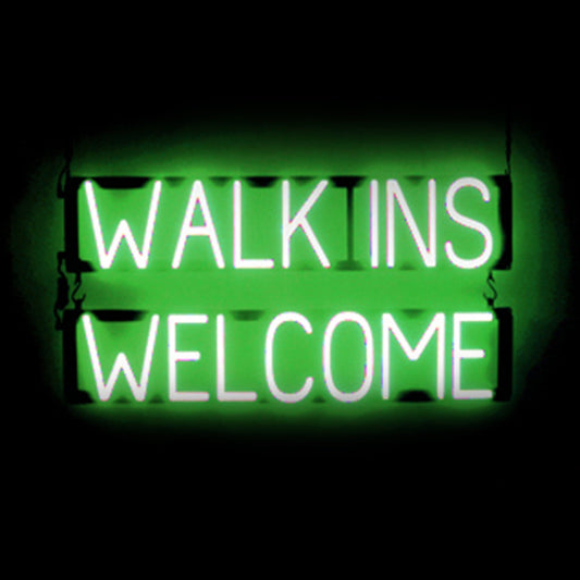 Let customers know they’re welcome anytime with the bold, high-visibility “WALK-INS WELCOME” LED sign from SpellBrite. Whether you run a salon, clinic, tattoo shop, or service business, this sign sends a clear and friendly message to anyone passing by, no appointment needed.